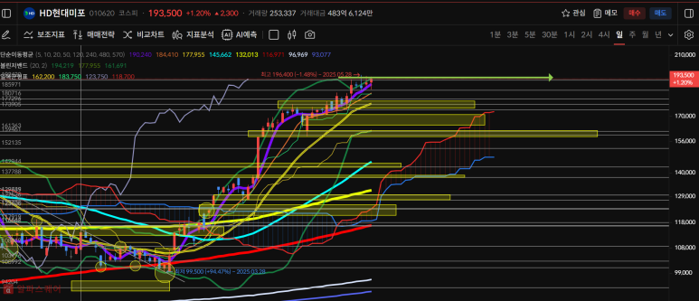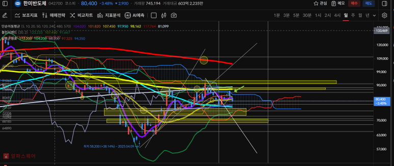 어제 큰 양봉으로 480일선의 저항을 보였다.
