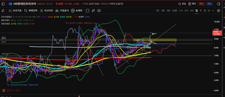 현재의 위치는 이전 고점 라인이었던 만원대를 향할 수 있는 중요한 자리다.
