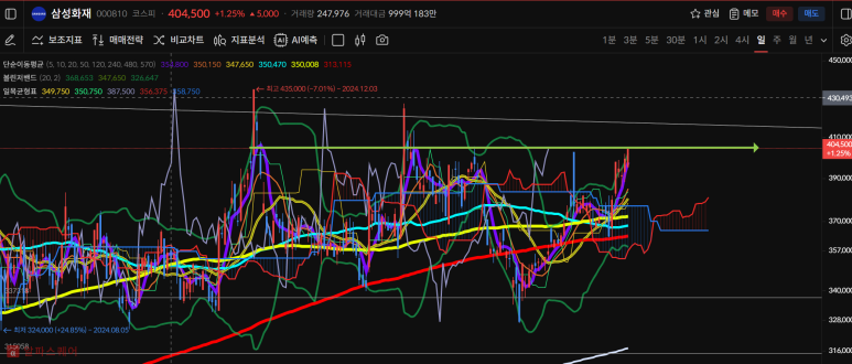 고점 부근이었던 43만원 부근을 목표로 할 수 있는 모양이 되었다.