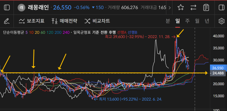 현재 재벌집막내아들이 잘나간다고 하더라도 11.28 이미 39600원을 달성하고 내려오고 있는 상황이기 때문에 더 하락할 가능성이 더 크다.