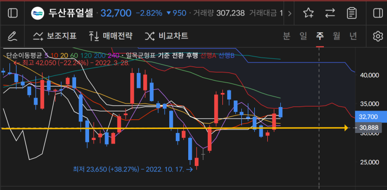 미래는 수소에 있다고 하는데 두산퓨얼셀은 계속해서 하락을 보이고 있다.