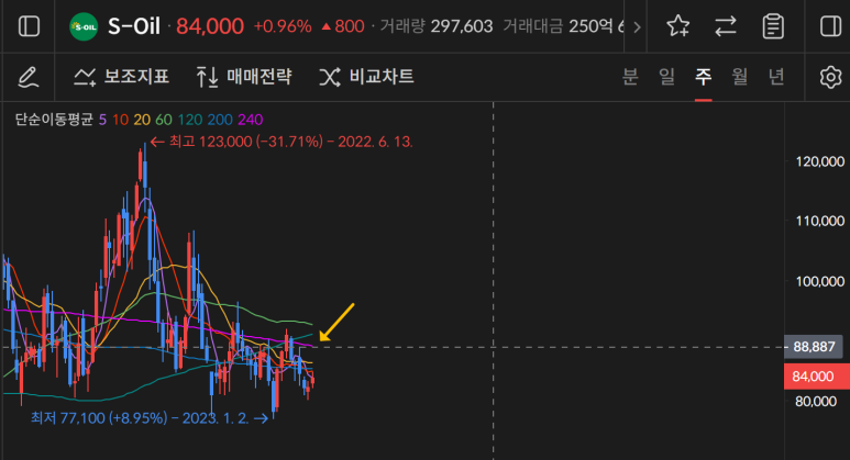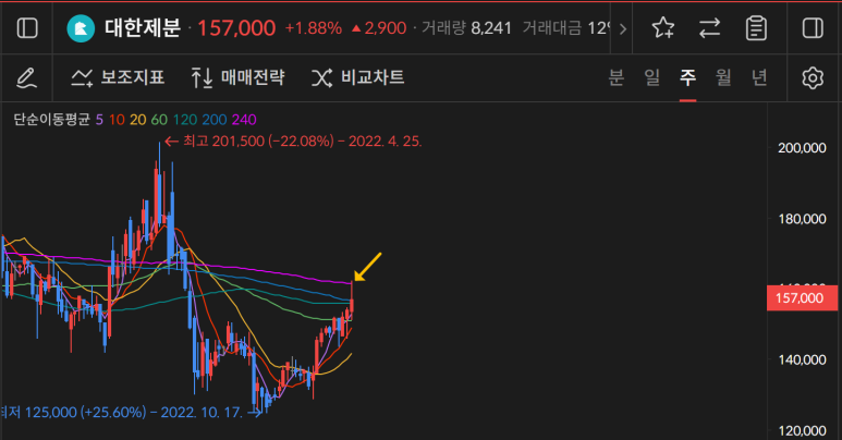 주차트로는 120일선을 돌파하면서 긍정적인 상황이 되었다.