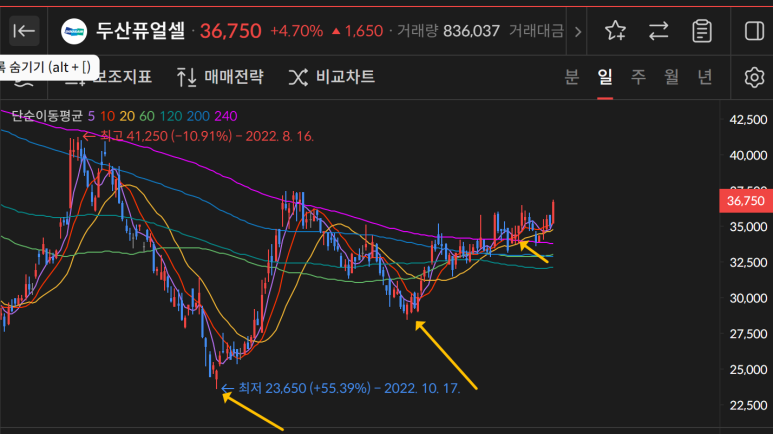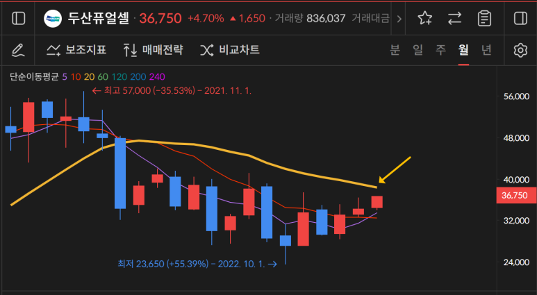 현재 두산퓨얼셀가 좋아하는 차트의 형태가 되겠다