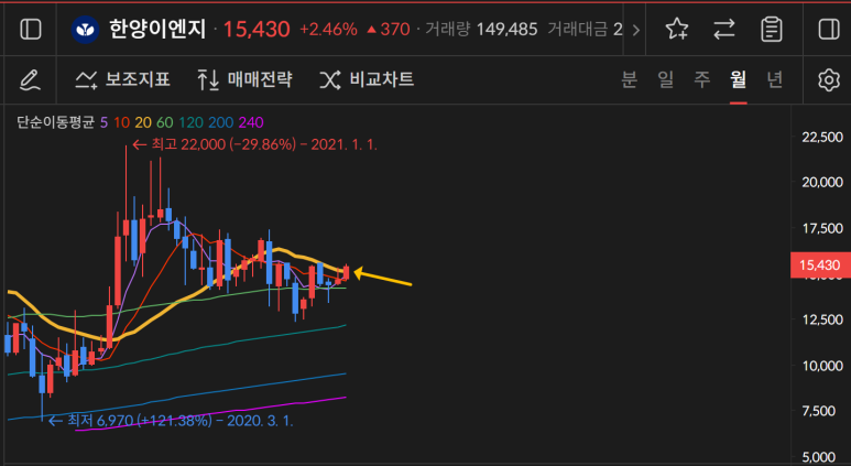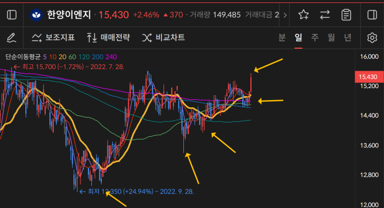 한양이엔지 역시 두산퓨얼셀과 비슷한 형태로 상승이 나왓다.