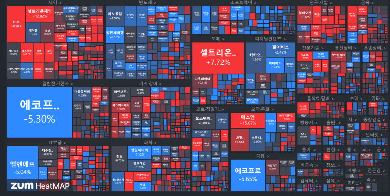 코스닥은 지난시간동안 좋았던 에코프로형제, 엘앤에프가하락했다.