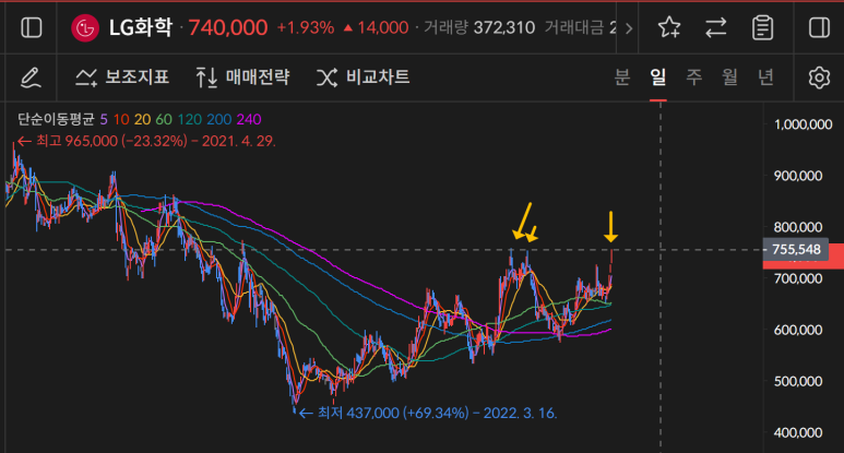 lg화학이 이전 75만원 부근의 저항과 다른 점은