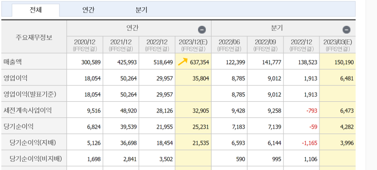 이상한건 21년의 당기순이익이 굉장히 높다.