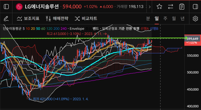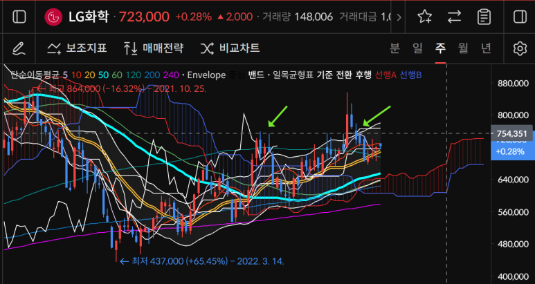 lg화학이 20일선을 회복하는 과정을 3주간 이어가고 있고