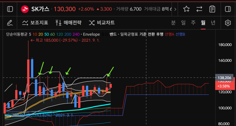 이번 상승세의 기대값은 이 전부터 강한 저항을 보였던 138000원라인이다.