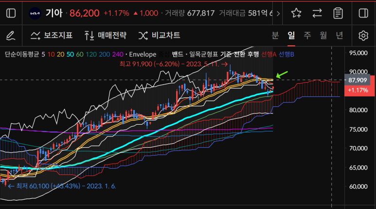 기아가 최근나왔던 89000원의 저항을 이번에도 언젠가는 맞이할텐데