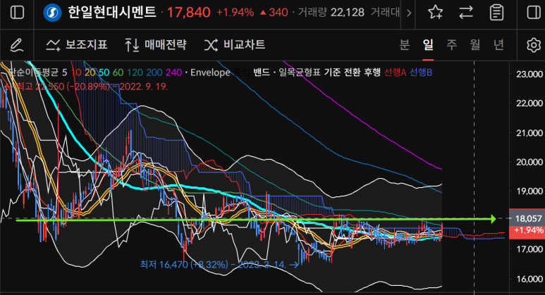한일현대시멘트는 18000원의 저항을 앞두고 있다.
