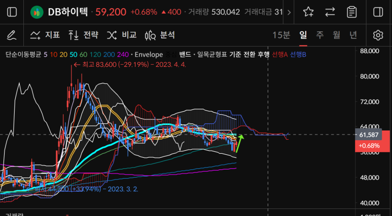 db하이텍은 다시 6만원 돌파를 기대할 수 있다.