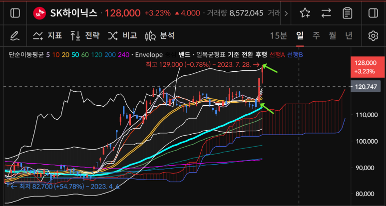 sk하이닉스는 주차트로 여전히 올라갈 수 있는 구간이 있기 떄문에
