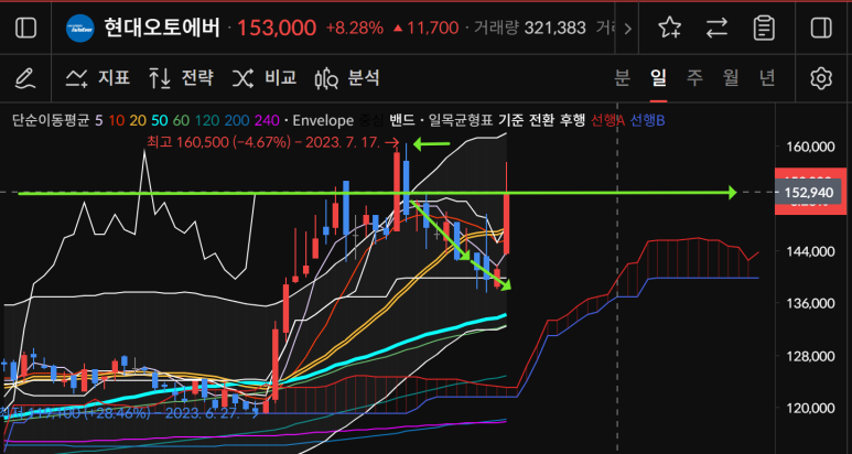 이로써 다시 7.17의 가격인 160500원을 기대할 수 있게 되었는데