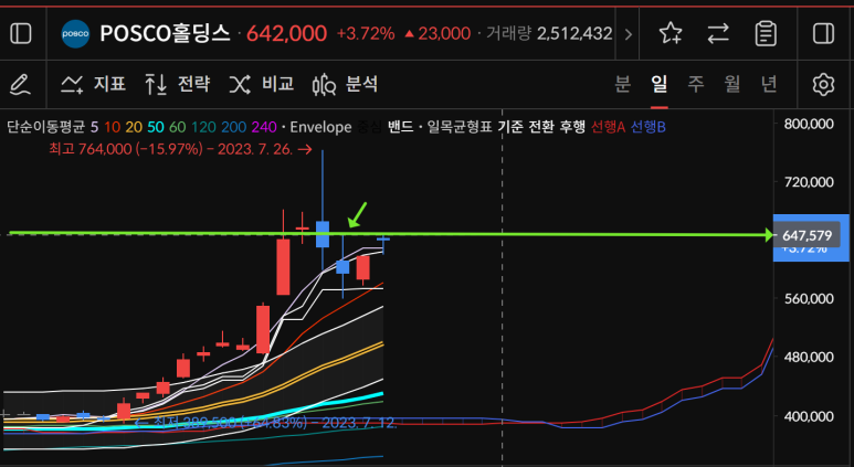 포스코홀딩스는 647500원 부근의 저항이 우려된다.