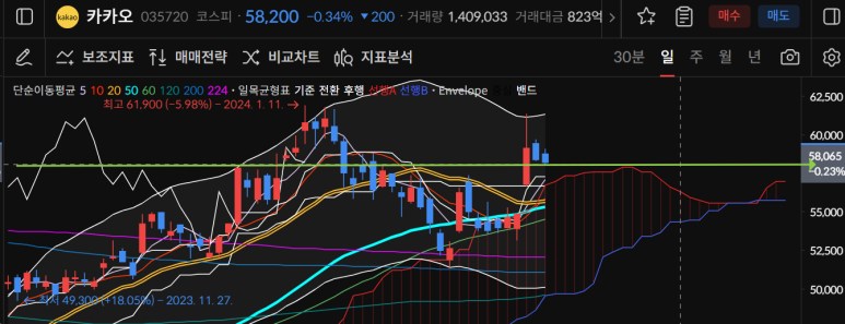58200원으로 마감된만큼 양봉전환이 필요해졌다.