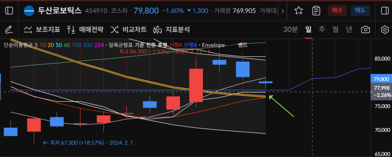 두산로보틱스는 84700원부근에서 조정이 나왔고
