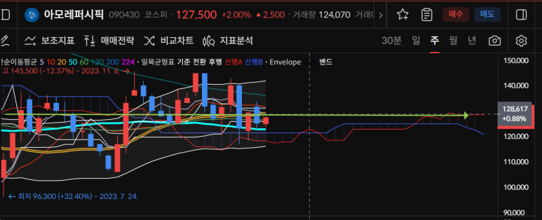 아모레퍼시픽은 주차트에서도 20일선회복이 중요하다.