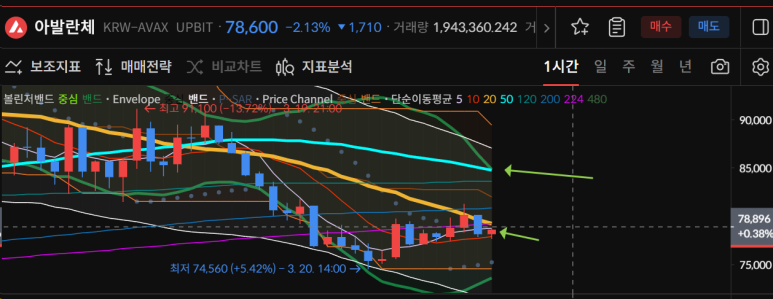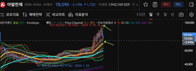 아발란체는 96030원 이후 78590원으로 진행되고 있다.