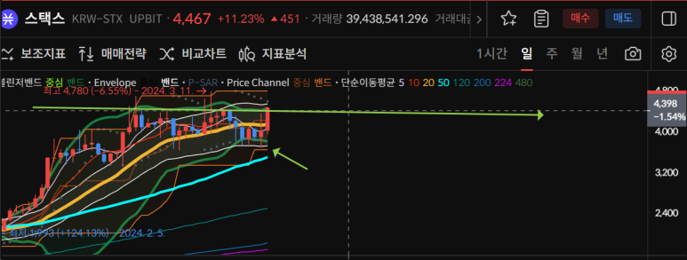 스택스는 괜찮은 차트형태를 보이고 있고 4780원을 돌파할 가능성이 높아보인다.