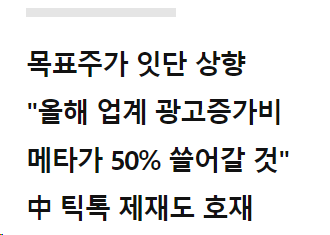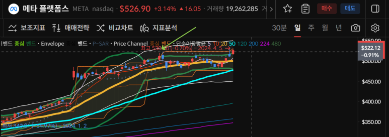 무엇보다 메타가 광고도 있겠지만 중국의 틱톡재재로 인한 반사이익을 가져오는 것이 상승의 요인이 되는 것으로 보인다.