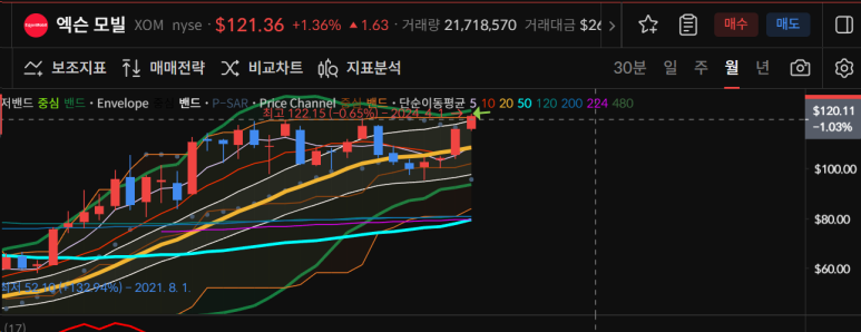 122까지 상승한 엑슨모빌은 다음주 역시 상승 가능성이 높아보인다.