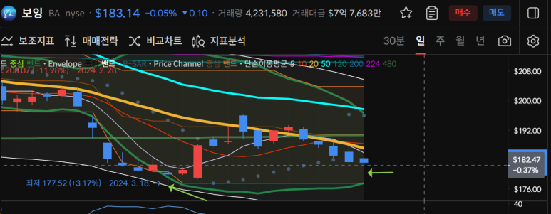 다음주는 180을 지키는 것이 좋지만 180이 깨진다면 이 전 저점 177을 지켜야하는 상황이다.