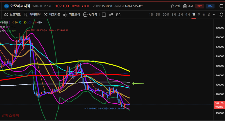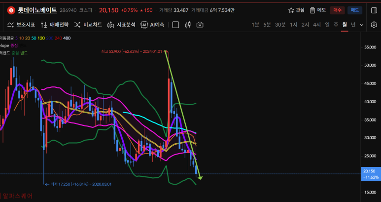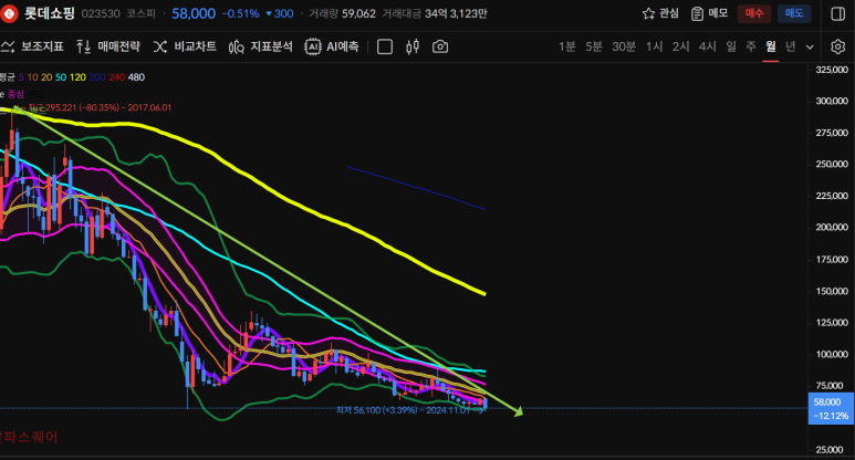 그나마 돈을 버는 롯데칠성역시 오를 수 있는 차트로 볼 수 없지만