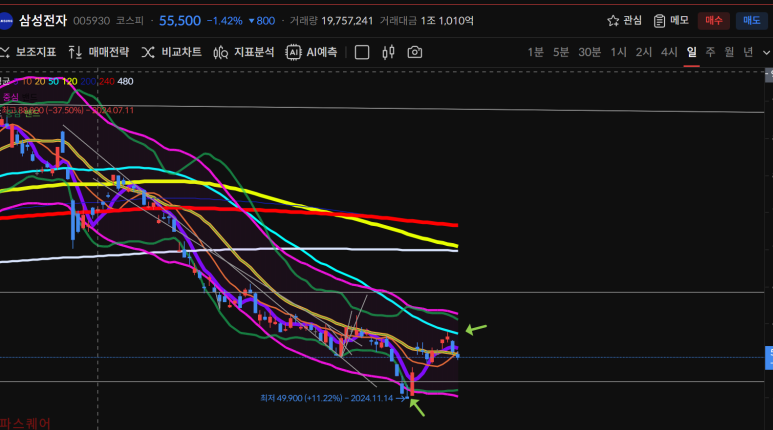 삼성전자의 연속하락이 있었다.