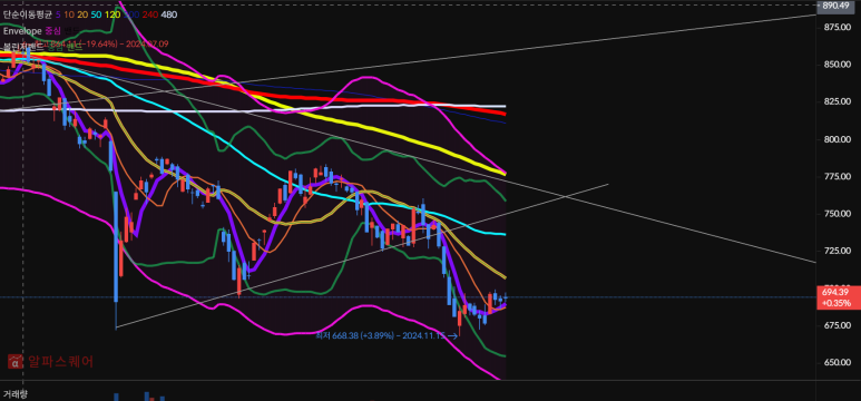 480일선까지 하락 시 많이 위험하다.