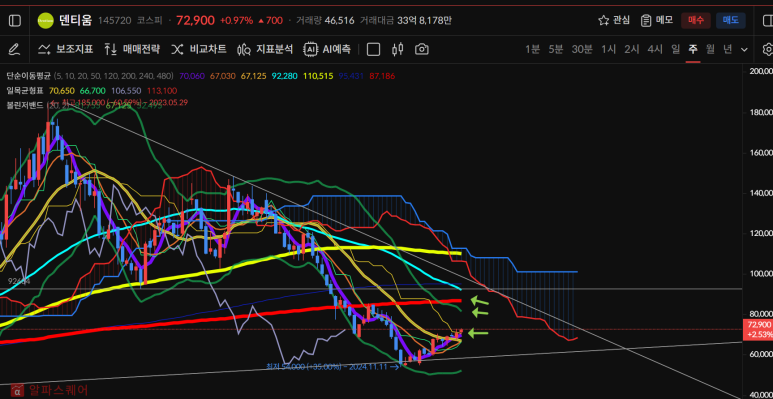 덴티움은 120일선 돌파하는 양봉이 진행중이다.