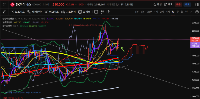 하이닉스는 어제 큰 상승이후 추가 상승이 나오며 마감했다.