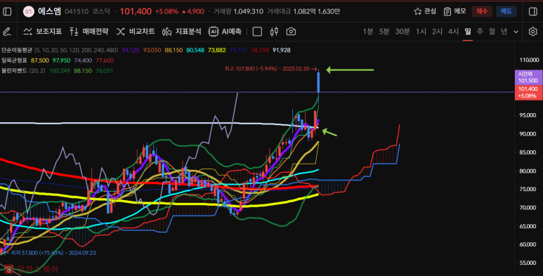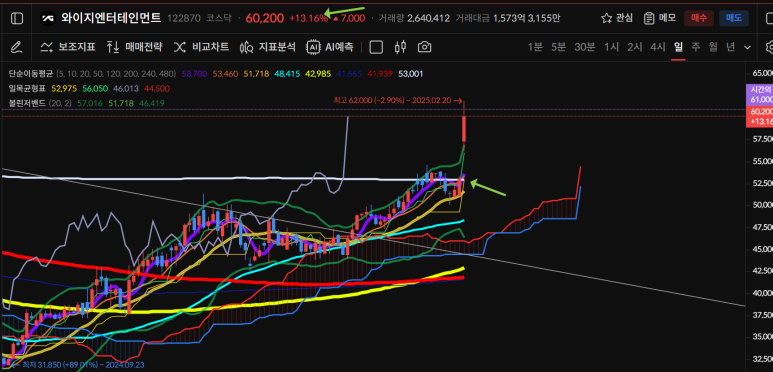 와이지는 갭상승으로 480일선 돌파, 그리고 6만원돌파가 있었다.
