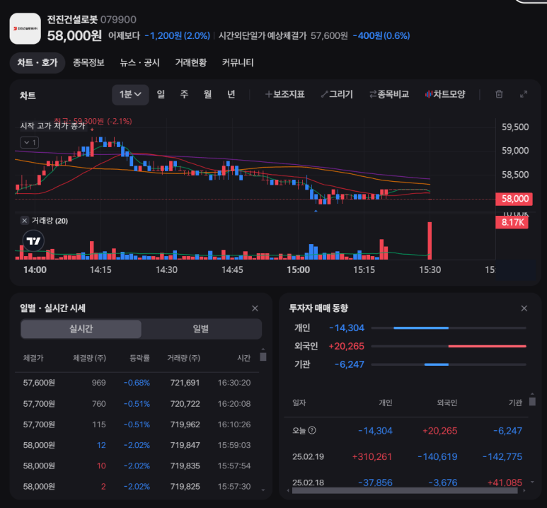 외인은 사는 모양이며 장 마지막까지 하락으로 마감했다.