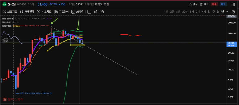 최근 2022년이후로도 4년연속 매도세로 음봉진행중이다.