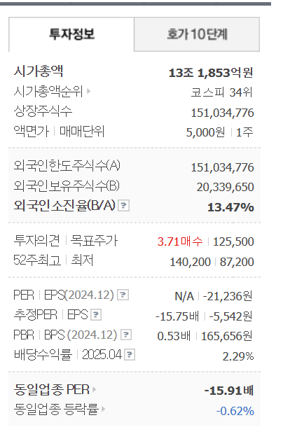 4년연속 하락세를 유지중이며 이제는 역사적 저점인 7만원대까지 내려갈 수 있다.