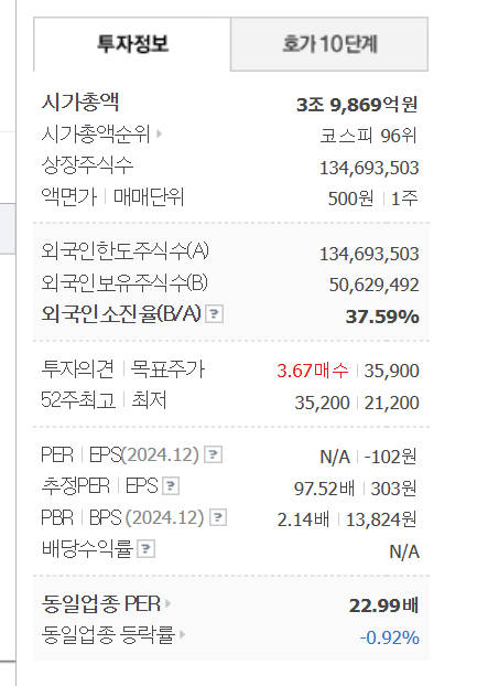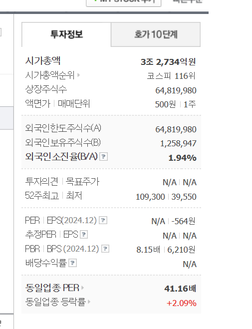 흑자전환은 했지만 여전히 분위기가 좋지않은 업종에 per 적자를 기록중이다.