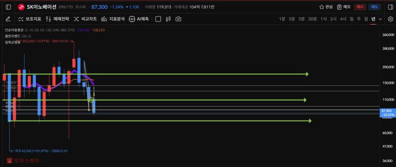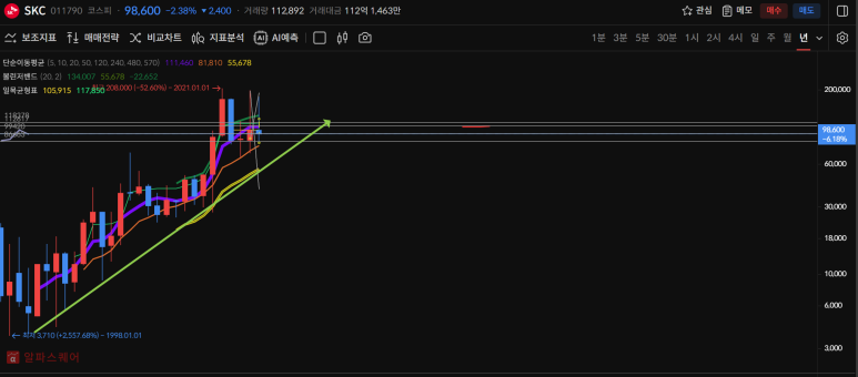 skc는 다른 per적자 주식보다는 괜찮은 차트모양을 보인다.
