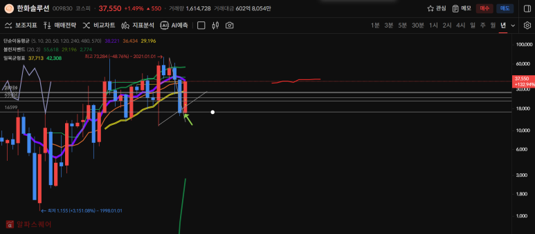 그리고 대선기간이 되면서 친에너지주 정책에 긍정적인 정권인 민주당이 집권할 가능성에서 태양광 기업인 한화솔루션이 기대를 받고 있다.