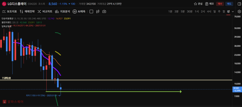 22년 긴음봉이후 23년 잠깐 하락을 멈추는 듯 하더니 만원대가 깨지는 하락을 보였다.